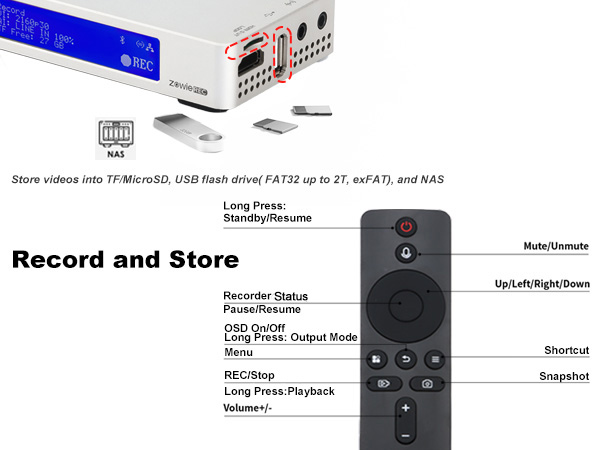 簡(jiǎn)單的設(shè)置可確保您快速開(kāi)始錄制,無(wú)論您的技術(shù)專(zhuān)長(zhǎng)如何,可以輕松錄制視頻并將其存儲(chǔ)在 USB 閃存驅(qū)動(dòng)器、TF 卡或網(wǎng)絡(luò)附加存儲(chǔ) (NAS) 上,從而提供靈活的內(nèi)容管理選項(xiàng)。使用 ZowieRec,您可以享受輕松無(wú)憂(yōu)的視頻捕捉體驗(yàn),兼具簡(jiǎn)單性和強(qiáng)大的功能。