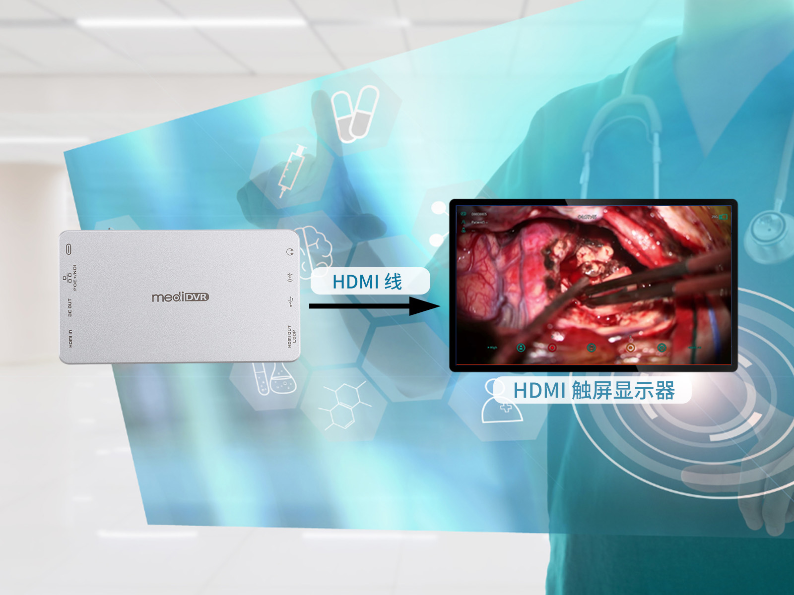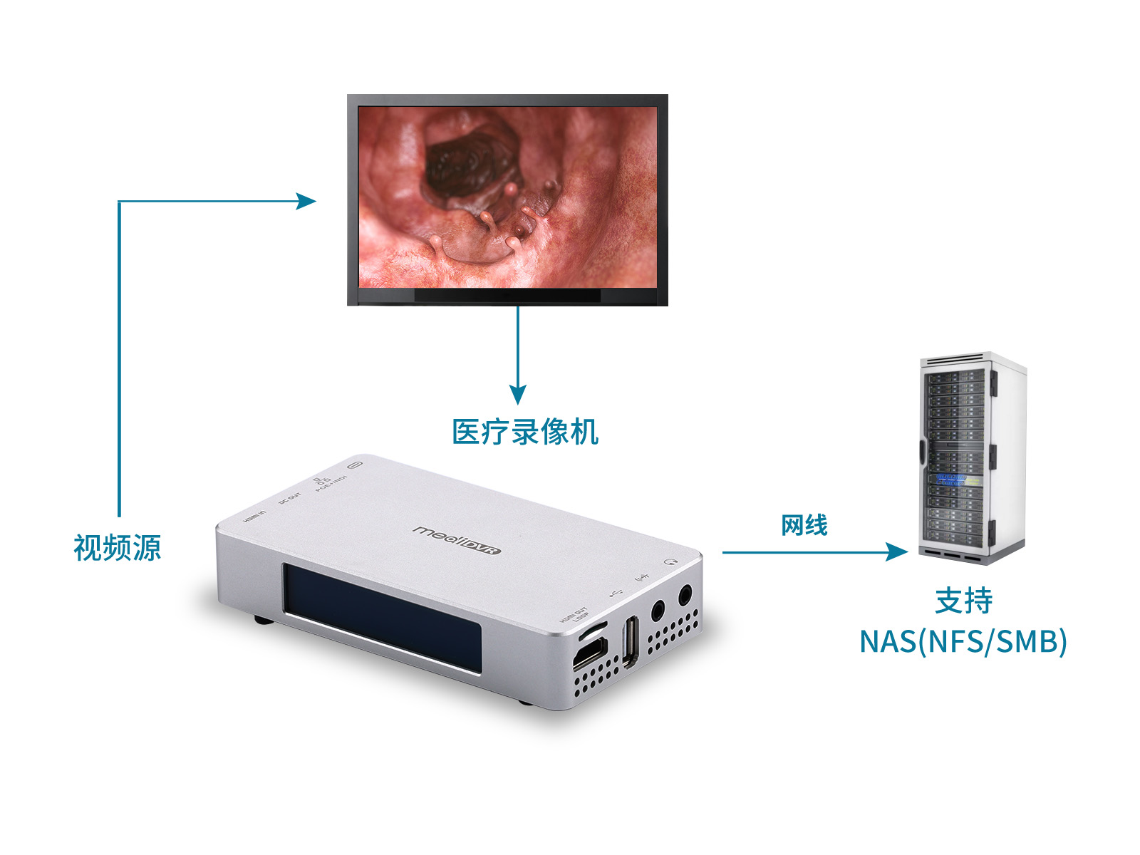 MediDVR,MD3可以無縫地從各種醫(yī)療設(shè)備(如內(nèi)窺鏡、關(guān)節(jié)鏡、手術(shù)攝像頭和超聲波機)中捕獲高清的HDMI 4K視頻。將非常清晰的靜態(tài)圖像和視頻輕松保存到外部USB硬盤驅(qū)動器、USB閃存驅(qū)動器或NAS。通過NAS, MediDVR, MD3可以將最高質(zhì)量的視頻錄像存儲數(shù)月甚至更長時間。
