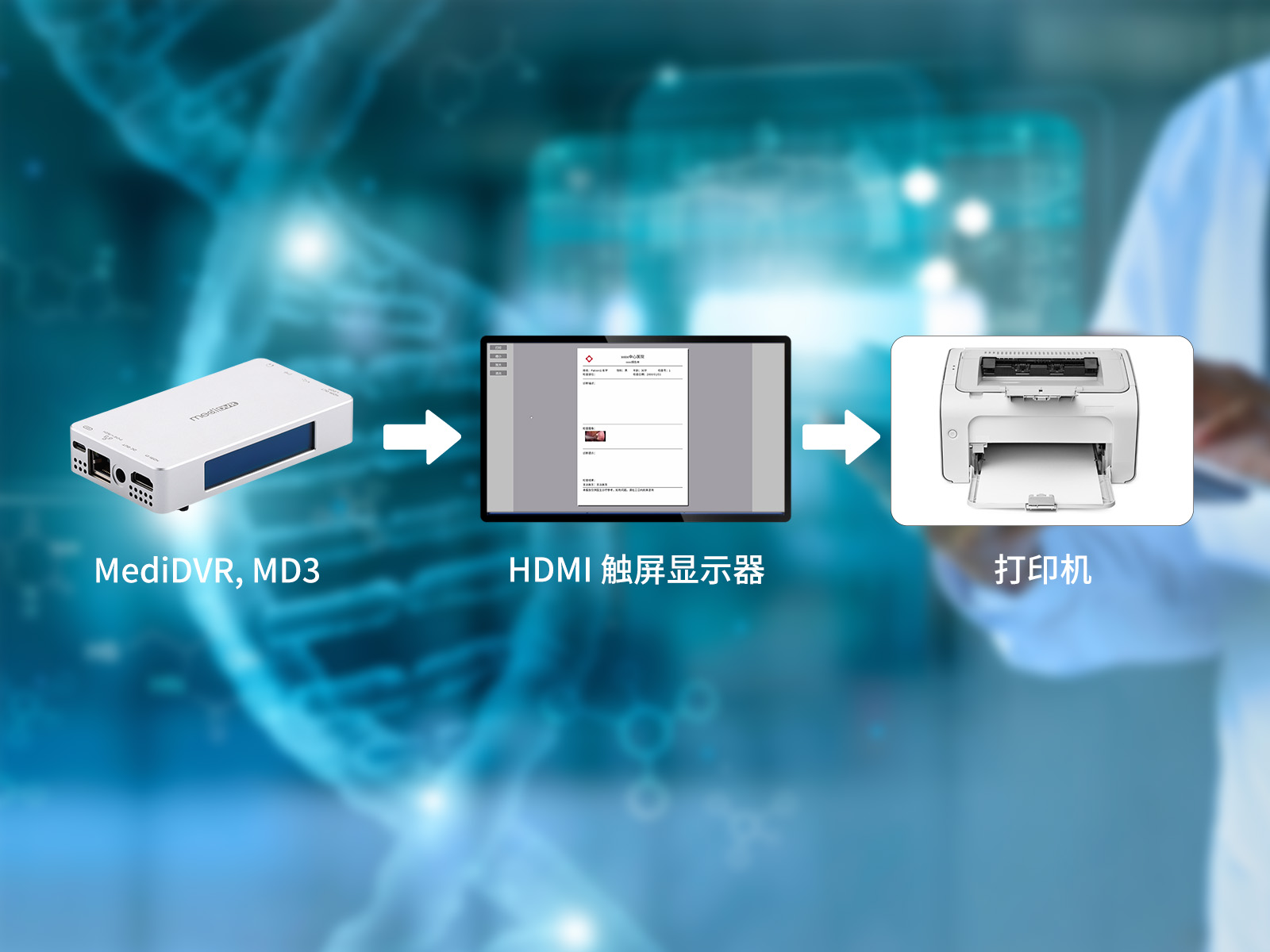 在記錄4K高質(zhì)量圖像和視頻質(zhì)量的同時, MediDVR,MD3的使用和控制也變得輕松自如。借助MediDVR,MD3 ,捕捉4K超高清視頻和靜態(tài)圖像變得輕而易舉。其直觀的界面支持輕松輸入患者信息、視頻回放,圖片批注及打印報告功能。