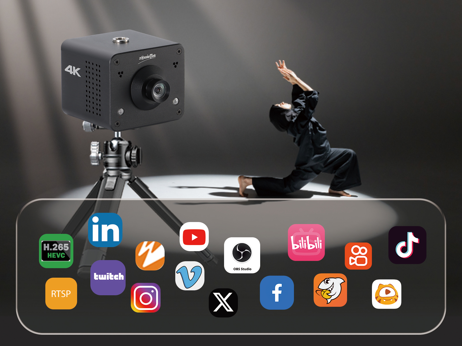 其流暢的傳輸技術(shù)可直播到所有主流RTMP(S)或SRT平臺,涵蓋了Facebook、YouTube、Twitch、LinkedIn、Instagram、Twitter、Wowza和Vimeo等,確保用戶在各大社交媒體和直播平臺上都能夠輕松展現(xiàn)出色的內(nèi)容。