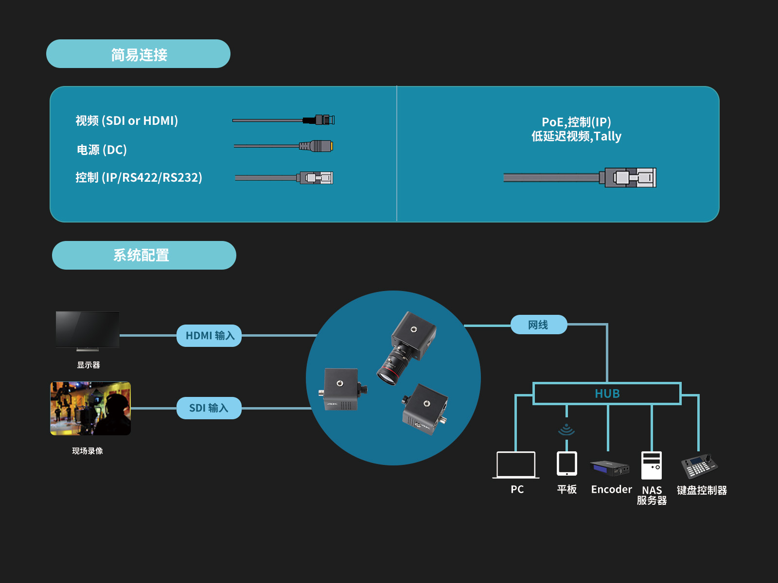 攝像機(jī)位置可以靈活布置。 它還可以通過IP網(wǎng)頁進(jìn)行控制并集成到專業(yè)視頻制作系統(tǒng)中。 此外,還提供 NDI|HX 版本,可以直接集成到您現(xiàn)有的 NDI 系統(tǒng)工作流程中。 在享受便捷遠(yuǎn)程控制的同時,您還可以流暢體驗(yàn)NDI傳輸?shù)膬?yōu)勢。