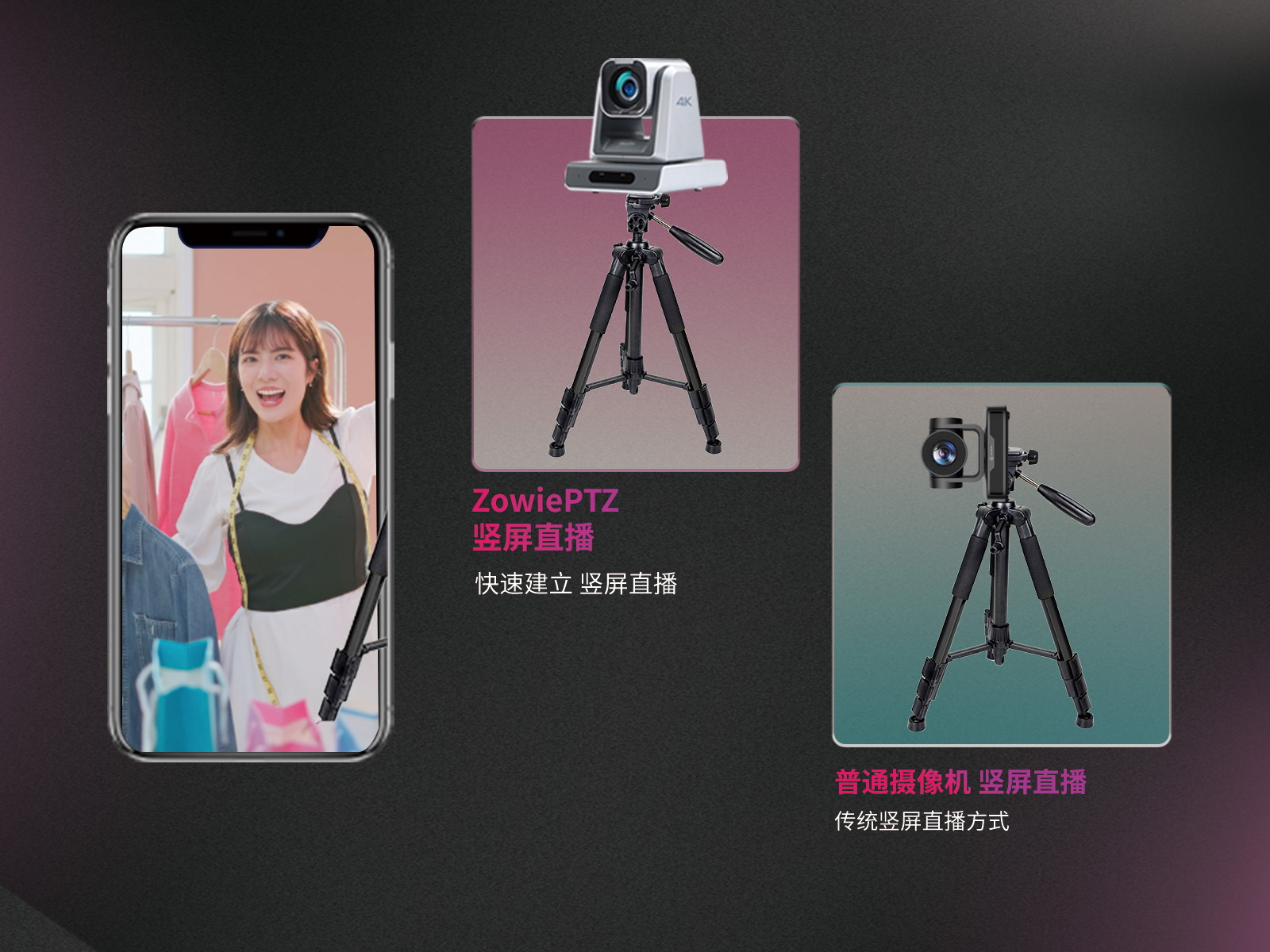 ZowiePTZ的12X豎屏版本可以輸出原生豎屏視頻,無需旋轉(zhuǎn)攝像機(jī),非常適合抖音、淘寶的豎屏直播。直播間搭配ZowiePTZ,長時間直播畫質(zhì)更清晰、聲音更流暢、畫面更穩(wěn)定。