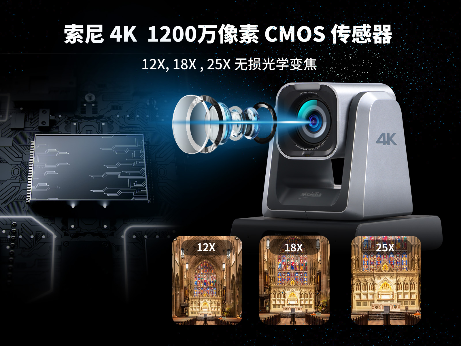 ZowiePTZ配備索尼超高清4K背照式堆疊式Exmor R CMOS傳感器,配合自主研發(fā)的AF對焦算法,可提供高水平的細(xì)節(jié)和極低的圖像噪聲。 此外,該相機(jī)還提供 12X、18X 和 25X 無損光學(xué)變焦鏡頭,能夠以高倍率放大以獲得詳細(xì)的特寫視圖。