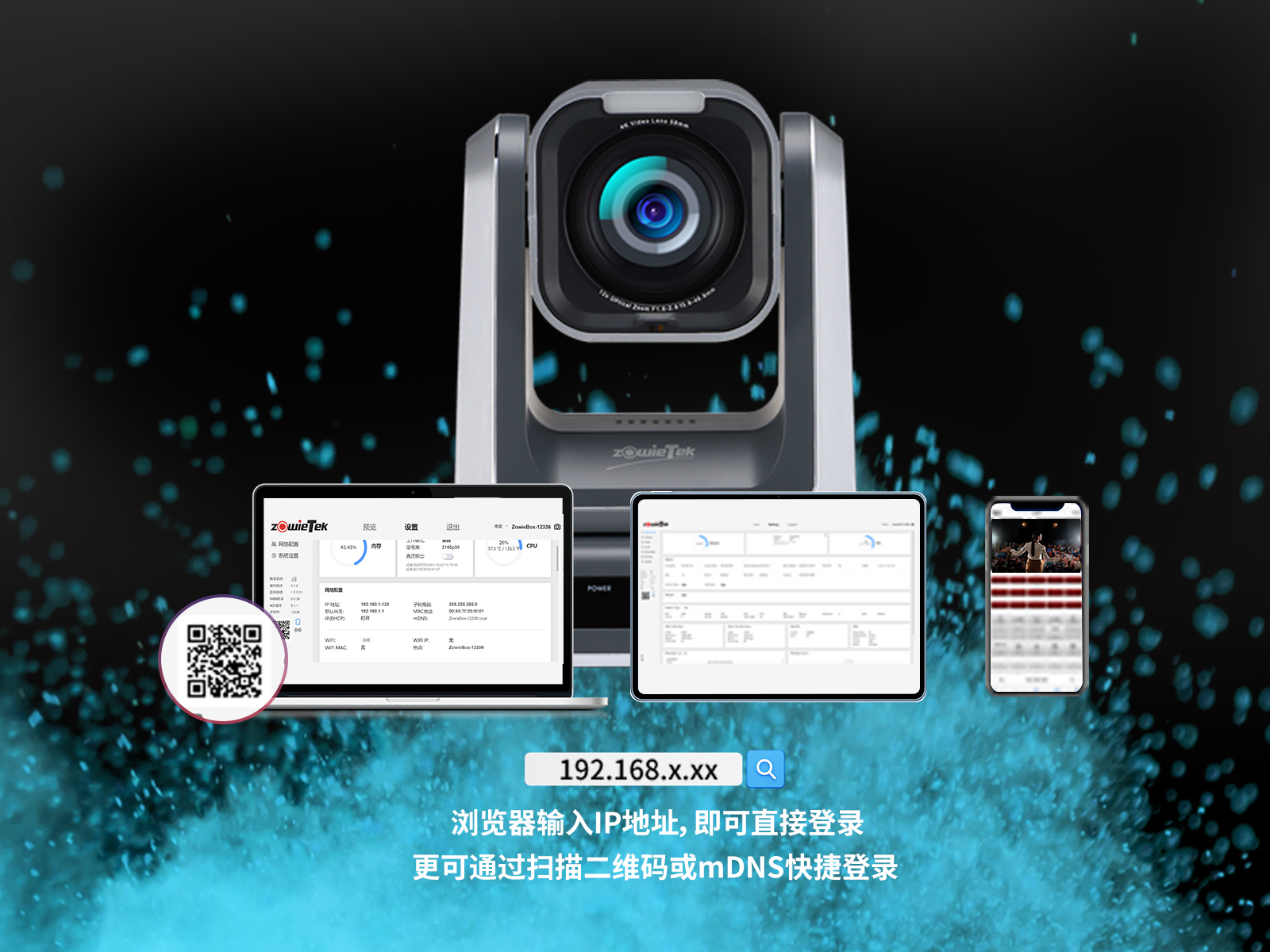 無需下載應(yīng)用程序,只需訪問其設(shè)備地址,支持所有相機(jī)的常用控制,包括WEB JOYSTCIK,ZowiePTZ UI可控制相機(jī)的曝光、對焦、預(yù)置位等。