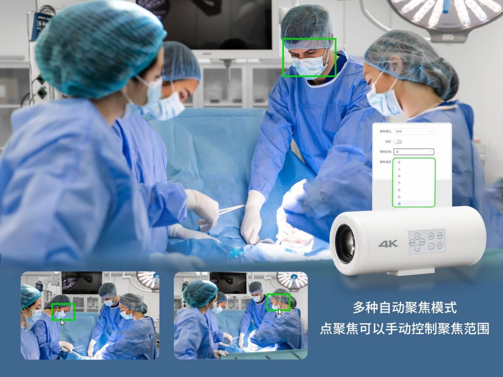 MediCam支持自動(dòng)和手動(dòng)聚焦模式,在自動(dòng)聚焦模式下,除了有上、中、下、左、右區(qū)域?qū)雇?,還可以選擇點(diǎn)聚焦,您可以對(duì)焦任何想要的地方