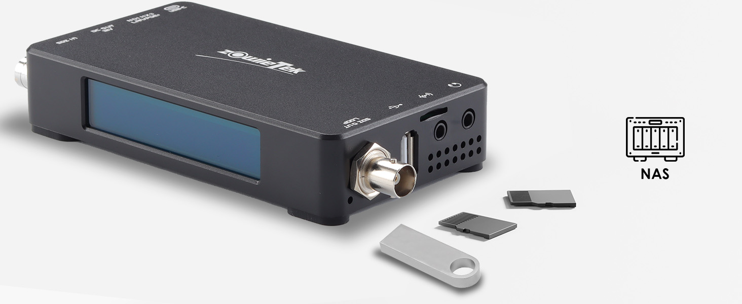 ZowieBox 支持同時(shí)進(jìn)行流媒體和錄制,視頻幀率可達(dá) 60fps,并支持 24 幀電影幀率。輸入內(nèi)容可以錄制為文件,存儲(chǔ)到 TF 卡、USB 存儲(chǔ)或 NAS。前置迷你屏幕可以實(shí)時(shí)顯示當(dāng)前設(shè)置和工作狀態(tài)。如果您有無限存儲(chǔ)空間,還可以選擇下一代 HEVC 格式進(jìn)行歸檔和編輯。