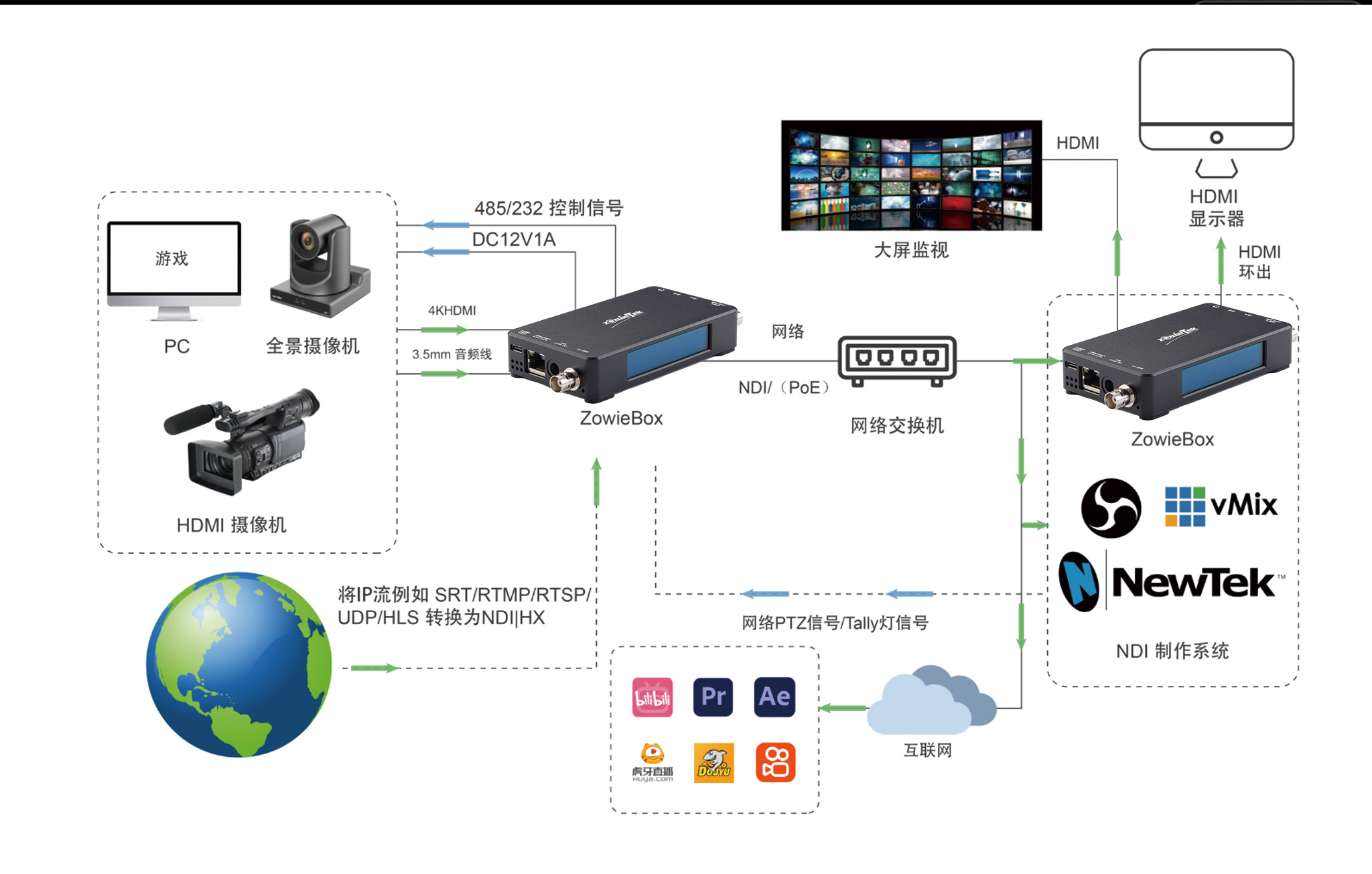 ZowieBox 是一款新一代的硬件編碼器/解碼器,采用小巧的鋁制盒子,是一款超緊湊的高清視頻流編碼器和解碼器。此外,它具有 NDI?| HX3、PoE、標(biāo)準(zhǔn)三腳架安裝和一個(gè)大而明顯的記分燈。更重要的是,它成本效益高且用戶友好。
