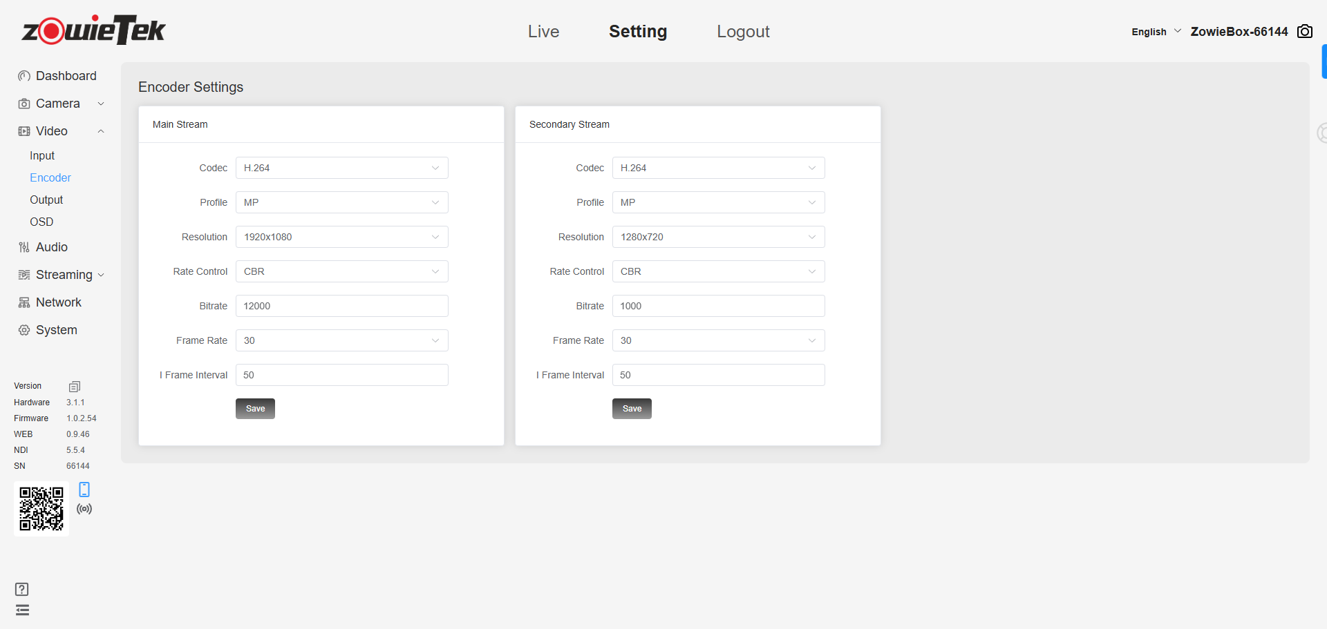 每個(gè)ZowieTek設(shè)備都有一個(gè)唯一的IP地址,可以通過(guò)任何瀏覽器實(shí)現(xiàn)完全控制。只需輸入IP地址即可輕松訪問(wèn)所有設(shè)置、管理配置并更新固件。