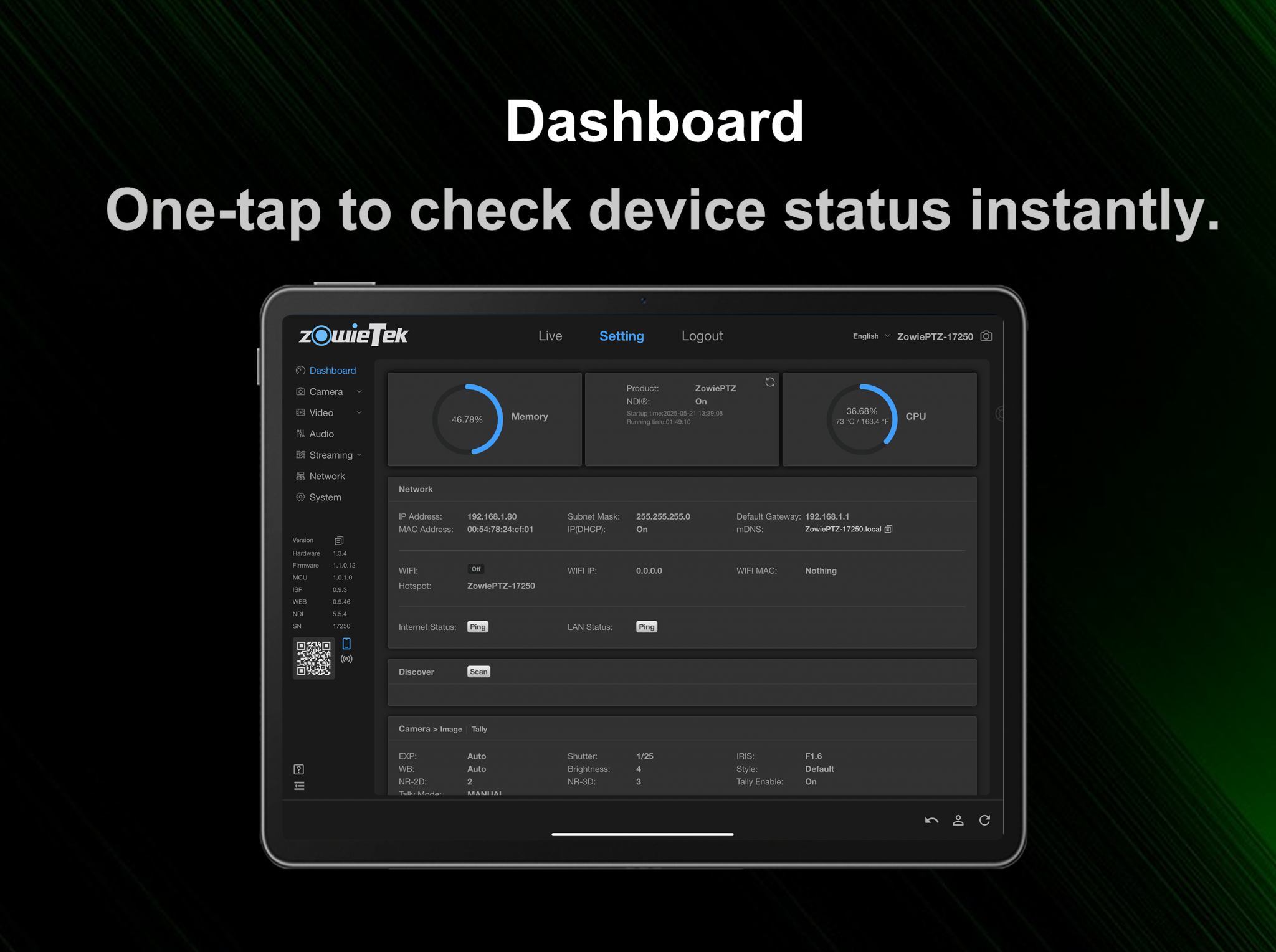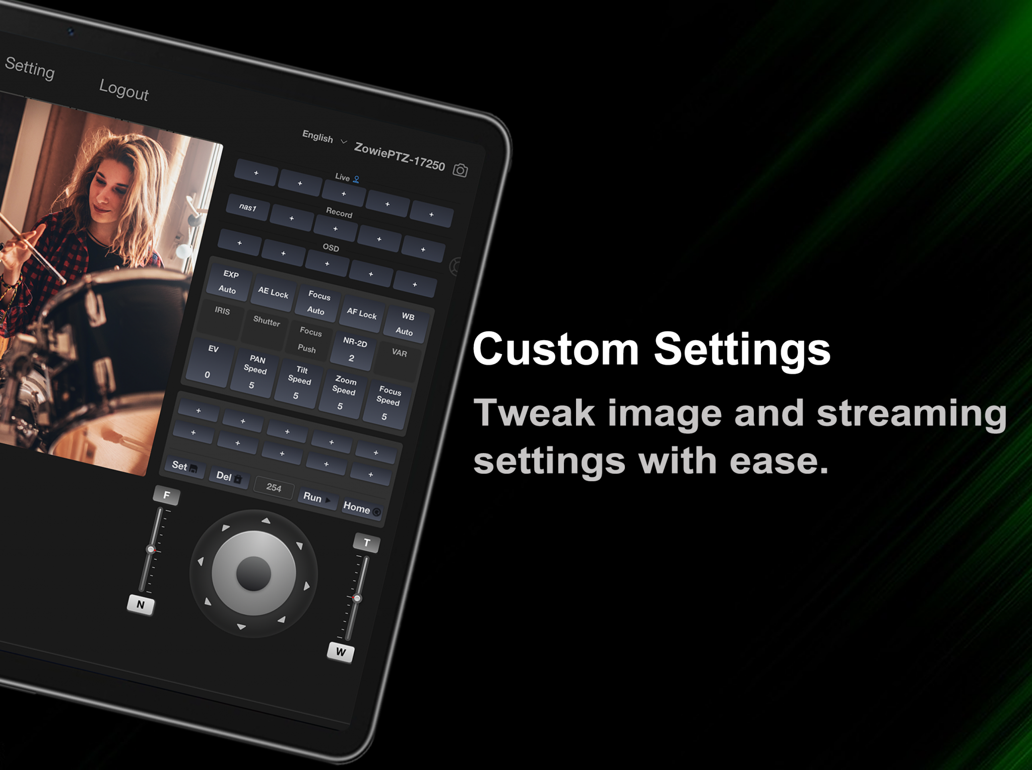 ZowieX 讓用戶能夠通過智能手機或平板電腦,輕松監(jiān)控、控制和配置 Zowietek 的全線設(shè)備,包括 ZowiePTZ(PTZ攝像機)、ZowieCam(攝像機)ZowieBox (視頻編解碼器)ZowieREC(錄像機)。